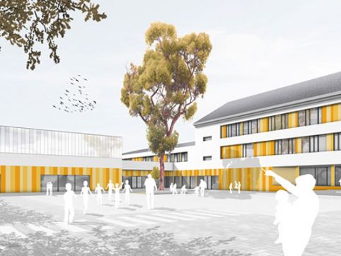entsteht als Ersatz für zwei in die Jahre gekommene Sporthallen. Der Bau hat nach