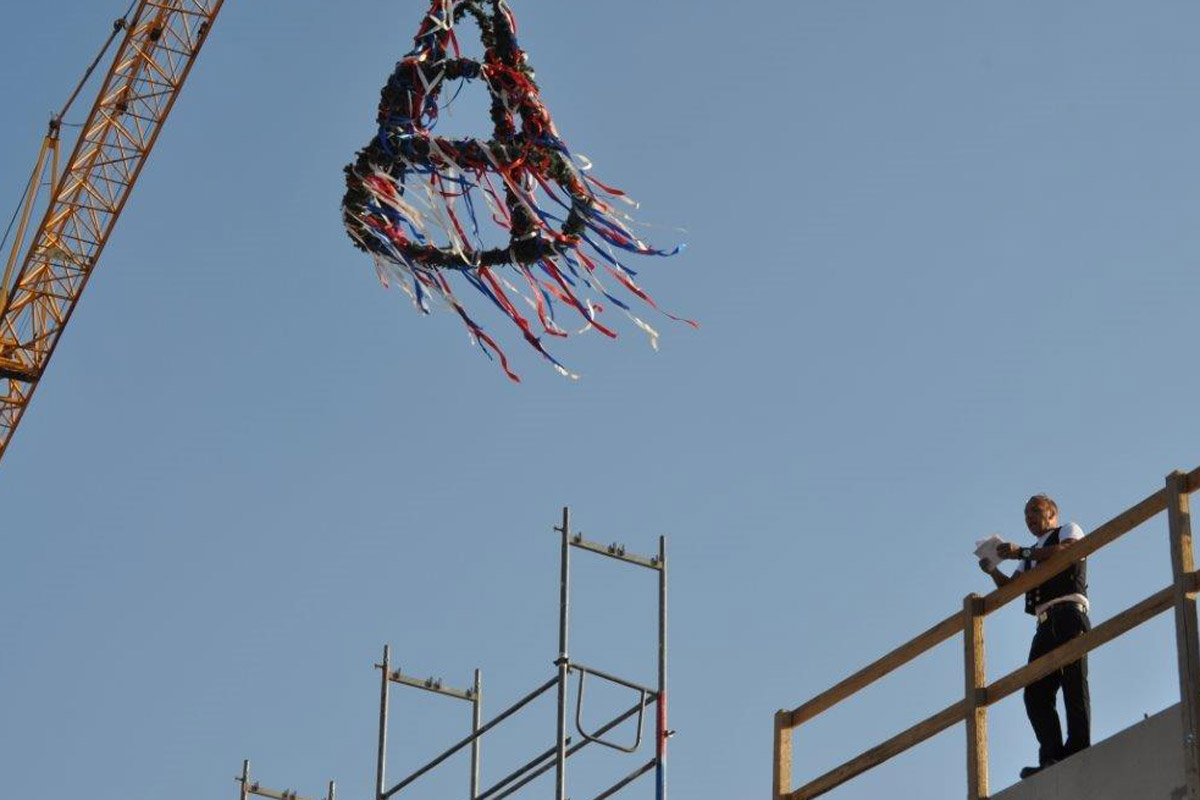 Keine fünf Monate nachdem die feierliche Grundsteinlegung für die Neubauten des Rathauses und der Jungholzhalle erfolgte, nutzten viele Meckenheimer sowie zahlreiche Vereinsvertreter das heutige Richtfest der Jungholzhalle, um ihre „neue“ Nachbarschaft zu erkunden.