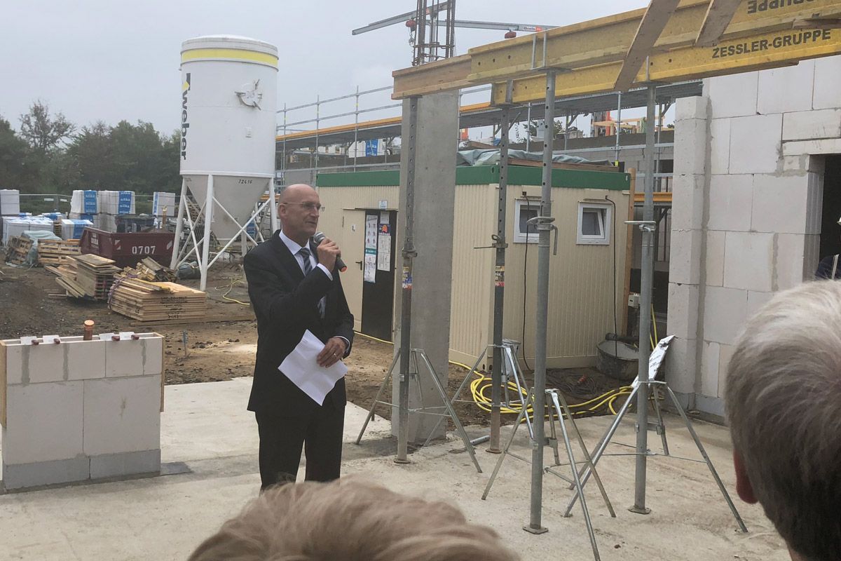 Ingo Junker, Geschäftsführer des ÖPP-Partners Aug. Prien-Bauunternehmung aus Bremen lobte die partnerschaftliche Zusammenarbeit im bisherigen Projektverlauf und zeigte sich überzeugt, dass das neue Kreishaus bis September 2019 fertiggestellt sein wird.